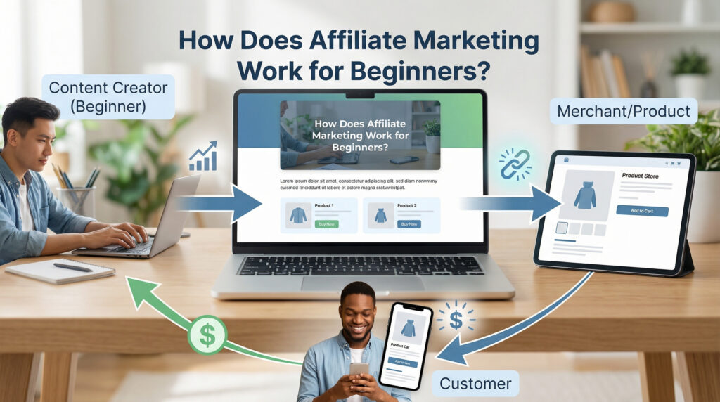 By the end of this guide, you’ll understand exactly how affiliate marketing works, where the money comes from, and how beginners actually get started.